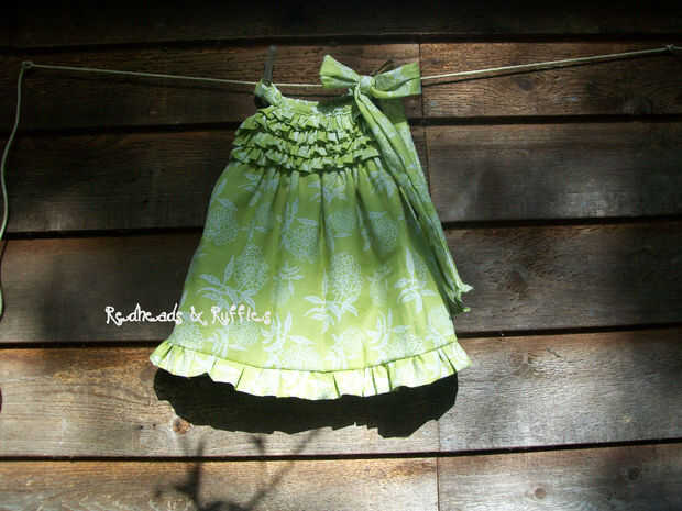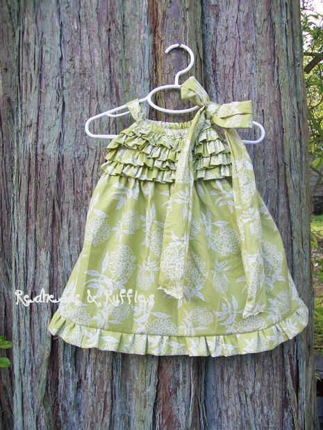 he creado este pequeño vestido para mi hija. Traté de llevar el vestido tradicional de la funda de almohada y hacerlo más bonito y añadir mi propia vuelta en él. Acaba de comenzar cortando la tela y coser juntos y esto es lo que se me ocurrió. La blusa está totalmente forrada porque sinceramente no he podido encontrar otra manera de evitar que los extremos de las colmenas en su lugar. Los volantes son reunidas y puestas en su lugar, y todas las costuras se rematan con una puntada de zig-zag.