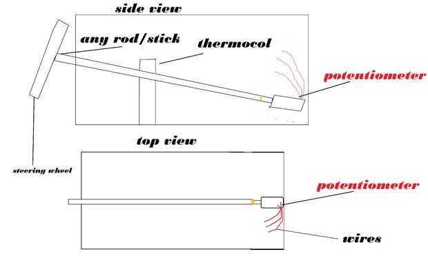 2 obtener una barra como la estructura (puede ser un tubo de pvc o algo... o tal vez una barra de plástico hueco) a través del mismo y pegar el potenciómetro dentro de la caja.