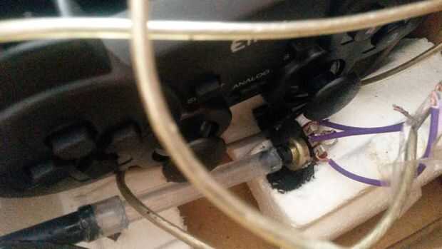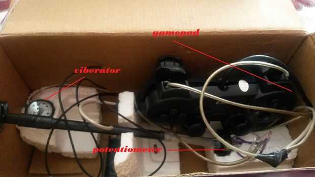 me adjunta el vibrador (motor) del gamepad en thermocol y fija a un extremo de la caja... para permitir que las vibraciones se sienten...