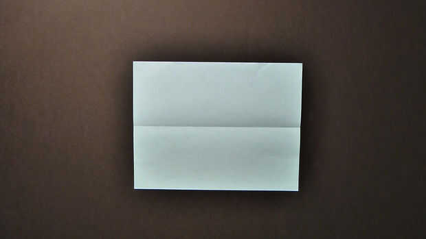 Pone el pedazo de paisaje (horizontal) de papel sobre una superficie plana. Doblar el borde superior del papel al borde inferior y desdoblar para crear un pliegue.