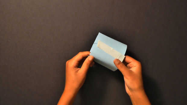 Rollo de papel, deslizando el borde del lado izquierdo del anillo en la ranura en la parte interior del lado derecho del anillo. Cinta de cierre a lo largo de la costura.