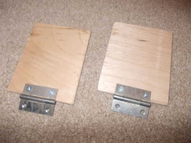 ahora cortar 2 capas de 6mm el tamaño del pedal del pie que desee y atornille las bisagras en la parte inferior de ellos