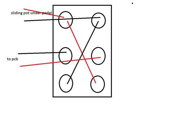 ahora encontrar lo común en su desplazamiento olla encontré mina a etiquetarse 2 y soldar un cable a que pin y luego otro 2 cables a los otros contactos será necesario llevar la bruja de dos alambres de la soldadura no son conectados a la parte posteriora común hasta el interruptor de dpdt y soldarlos según el diagrama el cable común debe ser llevado directamente a la placa y soldado a la pata central de su PWB montado pot