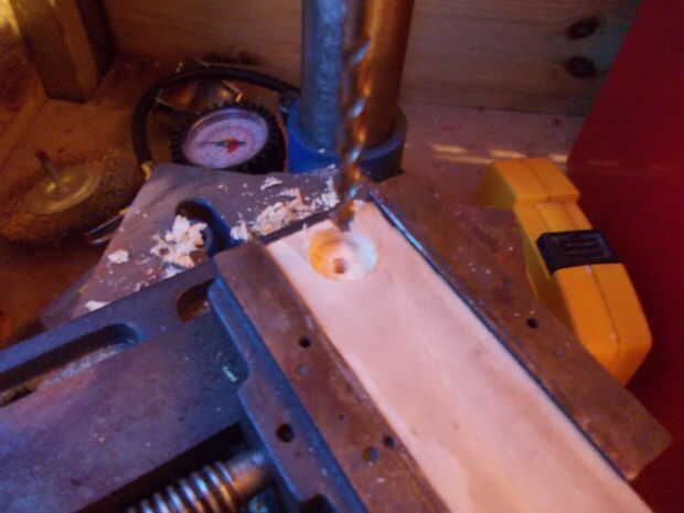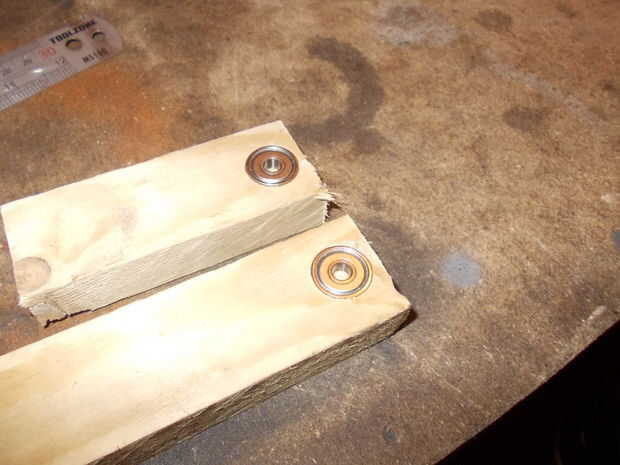 Luego taladro a través del centro de le plano agujeros con una broca de 6mm y rodamientos de inserto