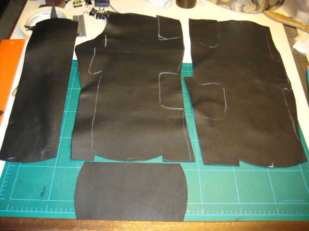 Esta envoltura particular fue hecha en 4 piezas separadas. Apenas tuve suficiente piel para trabajar con, así que se tuvo que conformar e incluye defectos en la piel y combinan textura ligeramente diferente. Si yo tuviera un trozo más grande o más pedazos de cuero, yo pude haber sido un poco más selectivo.