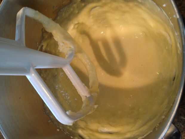 Crema a la mantequilla y el azúcar hasta que esté ligero y esponjoso. Luego agregar el huevo, la crema agria y la vainilla. De la mezcla.