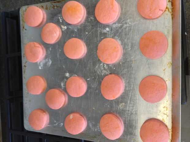 Precalentar el horno a 350 grados. Colocar las galletas sobre una pulgada aparte en la charola y hornear por aproximadamente nueve minutos, hasta dorar ligeramente en el borde. Permitir las cookies reposar en la hoja de dos minutos, luego transferir a un cable estante de enfriamiento.