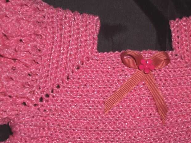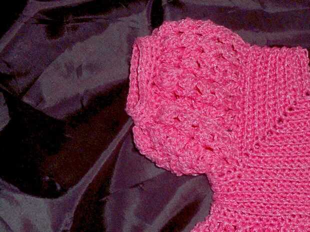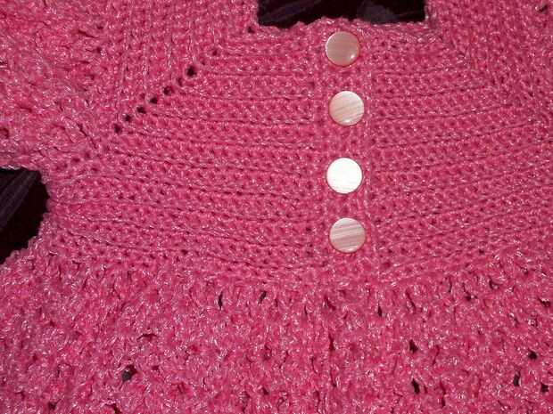 se trata de un bebé del empavesado que quiero hacer para la gente. Compré un patrón de alguien en Inglaterra en Ebay y el volante es de ese patrón y entonces diseñé las mangas y parte inferior yo mismo. Utilicé un hilo de bebé microspun.