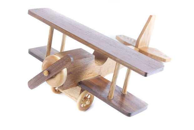 El biplano de juguete busca agradable... tal vez con alas redondas, que recuerdan a un abejorro.