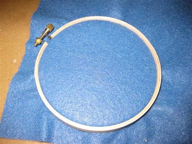 Separé los dos anillos en los aros y había exprimido entre el fieltro.   Es apretar el tornillo de ajuste para sujetar el fieltro.  Una vez apriete utiliza tijeras de asimiento de casa para cortar alrededor del aro para eliminar el material exterior.   Dejando sólo la interior de fieltro.
