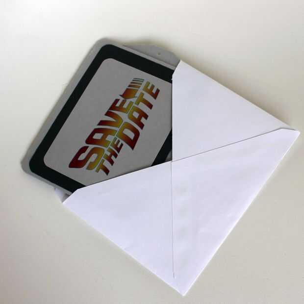 Mi pareja y yo esta tarjeta DeLorean volador habían diseñado para fiesta de cumpleaños de nuestro hijo este año, pero sería una igualmente impresionante boda guardar la tarjeta de fecha.