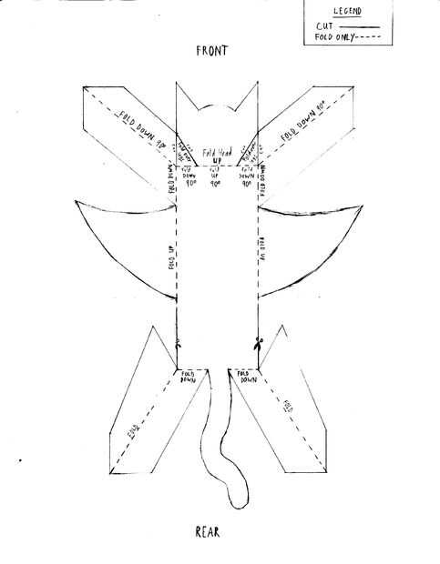 Hacer no cortar las líneas punteadas. Corte a lo largo de la frontera de su RoboCat volando. Cortar líneas sólidas en su RoboCat, en particular las lengüetas del triángulo al lado de la cabeza. Asegúrese de que las lengüetas de triángulo atadas al cuerpo.