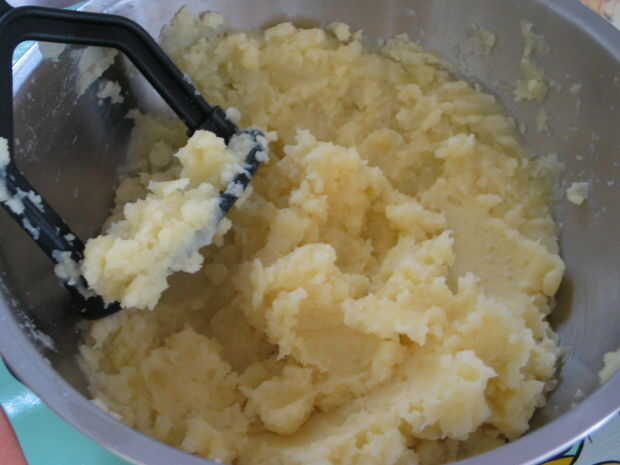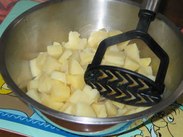 6. Machaque las papas! Un machacador vendría práctico pero un tenedor podría funcionar así