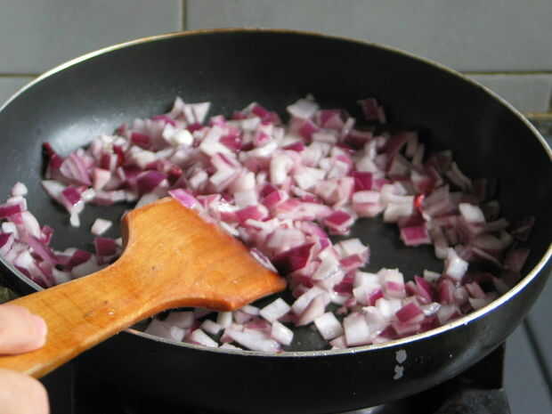 5. freír las cebollas en una sartén hasta que se puede oler el hermoso aroma de cebollas (imagen 2)