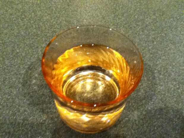 Llene el vaso con agua tibia. En la foto, se parece un poco jugo de manzana, pero su agua. Sólo se ve que debido a la iluminación y el color del vidrio, rosa (por favor no juzgar).