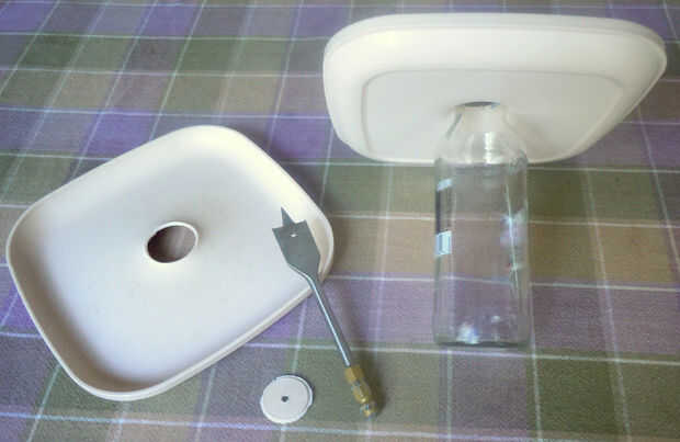 El agujero inicial es mucho menor que el diámetro final requerido. La forma de "Volcán" se forma durante el proceso de estiramiento del agujero inicial. Probar diferentes tamaños de agujeros de arranque para obtener una profundidad de dibujo taller de volcán (~3/4 "diámetro de un plato ser utilizado con una botella de vidrio)