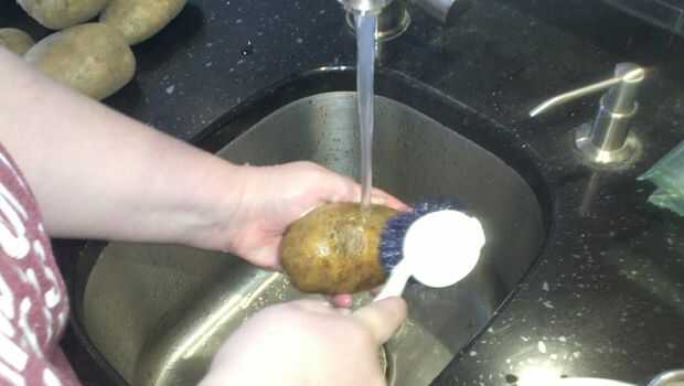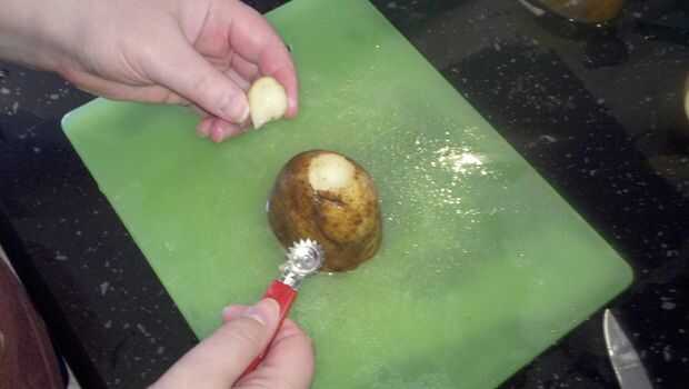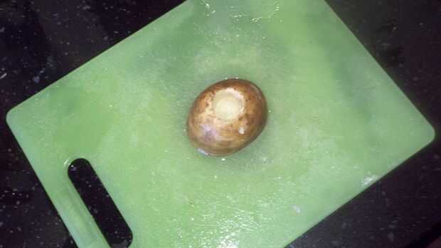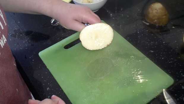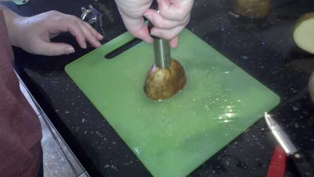 Cortar las patatas en medio perpendicular a la longitud de la patata.