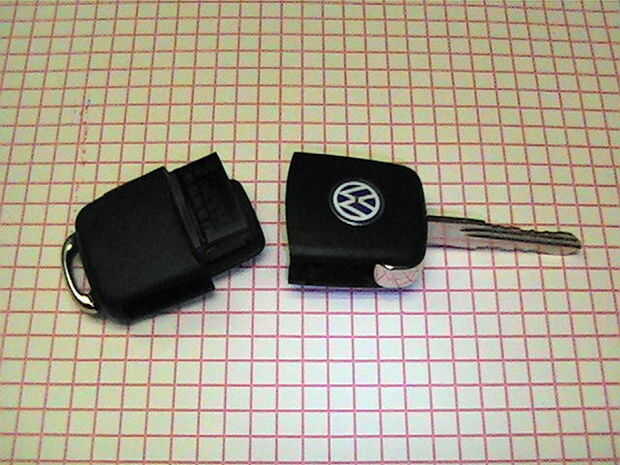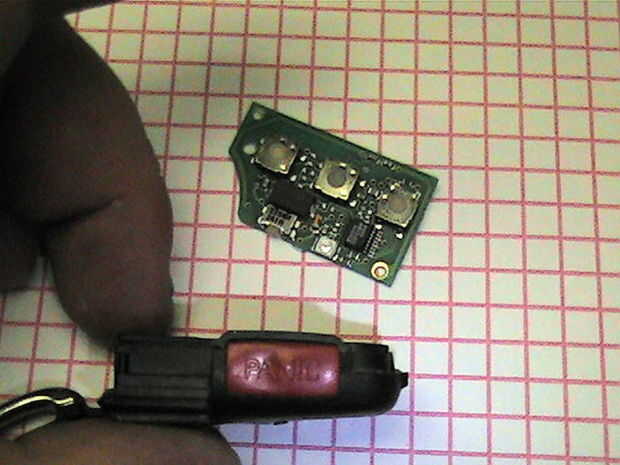 La clave de medio lado y abrir la parte de electrónica. Es complemento encajada entre sí. La forma más fácil de conseguirlo aparte es usando los dos dedos índice para abrir donde descansaría la punta de la llave cerrada.