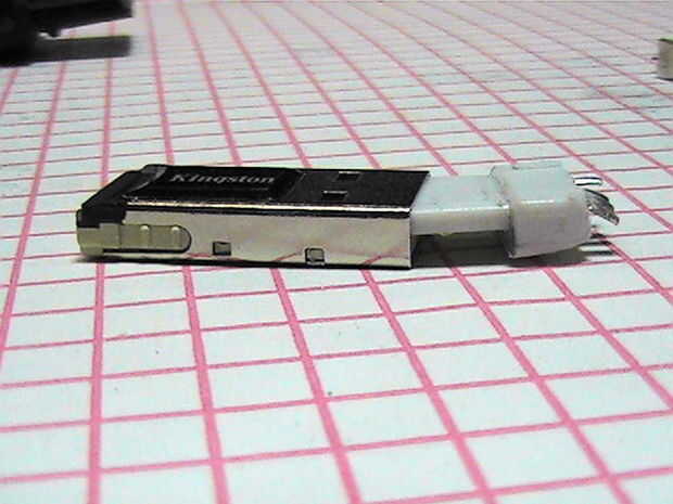 Compañero de la caja de Micro SD a USB macho. Tomé el USB macho, sólo mantener el blanco en parte. Conectar a la caja del adaptador Micro SD y probar el ajuste en el soporte clave.