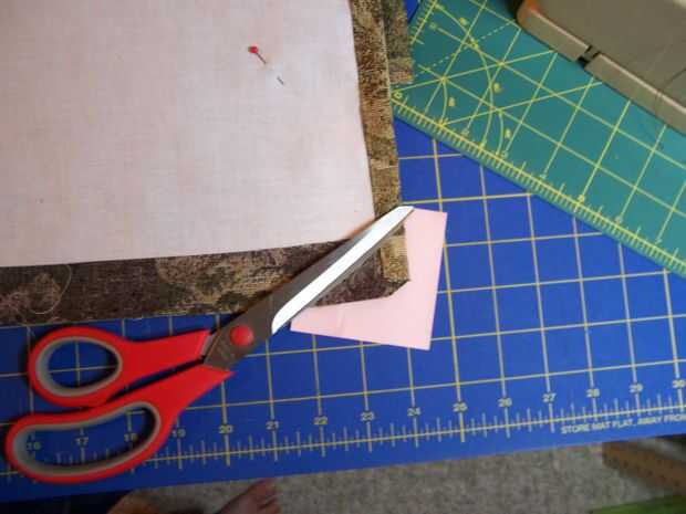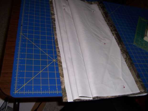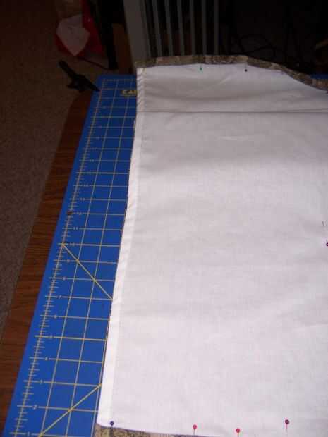 Después se cose el dobladillo, las costuras laterales están próximas. El trazador de líneas Fabic es ligeramente más pequeño que la tela principal, esto hace más fácil doblar las costuras laterales sin hacer el manojo del trazador de líneas para arriba y arrugas. Doble la tela más 1", y luego doblar 1/2" de que bajo y pin a lo largo el borde bonito y straght. En las esquinas del corte 1/2" en un ángulo y cortar como mucho exceso de material en las esquinas, esto ayudará a los bordes poner planas y lo más importante, ayudar a su máquina de coser en el borde, sin golpear un enorme montículo de material y romper la aguja.