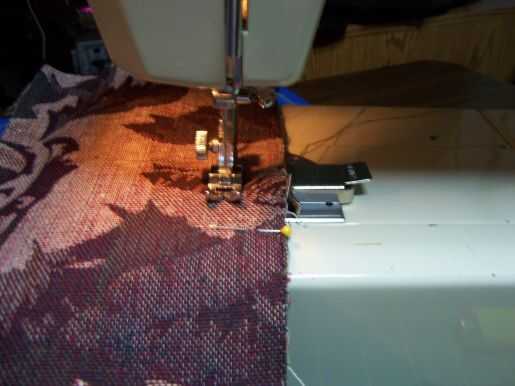 Desde aquí todo lo que necesitas hacer es sus esquinas de la caja. Posición de la pieza lateral en el punto medio de la portada, cosa de. Inicio usted pulgadas desde el principio de la costura y terminar la costura 1 pulgada desde el final de la tela.