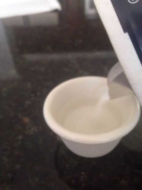 Vierta aproximadamente una cucharadita de sal en la taza y mezclar hasta que se disuelva la sal.