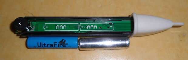 He comprado recientemente una pluma alerta de voltaje de Aliexpress.com y encontró la pluma es necesaria para suministrar 3,6 + v a la luz el blanco incluye LED con un botón, no dos pilas AAA.
