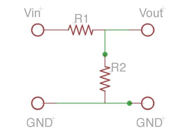 Un divisor del voltaje típico se construye colocando dos resistencias en serie. La Unión de los dos tiene una tensión fraccional de la fuente.