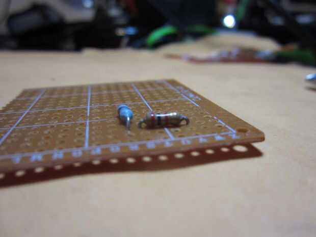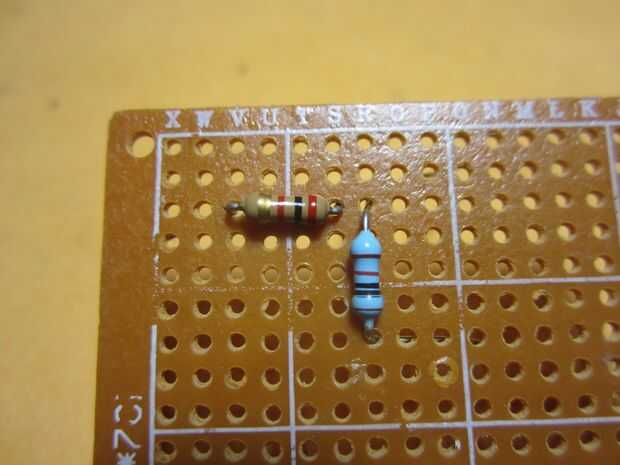 Coloque las resistencias de la misma manera de 90 grados como el dibujo. Tenga en cuenta que dejé algunas habitación arriba y a la izquierda para añadir los componentes o habitación para ajustar si cometo un error. Eso nunca sucede! NUNCA.