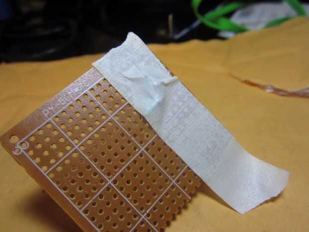 Usé cinta para mantenerlos cerca de la Junta para soldarlos bien. Otra técnica que puede utilizar es usar un par de la restricción para abrir pinzas (vistas en las fotos).