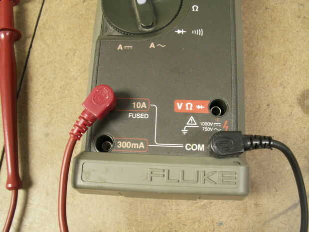 Configurar tus puertos multímetro y conecte sus conductores a las dos espigas, no importa qué color va a lo que uno.