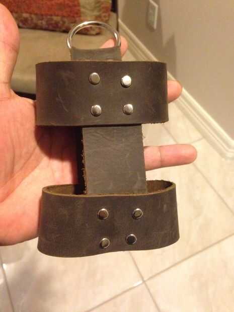 Tomar la segunda correa y seguro más abajo de la correa (con el anillo) de la misma manera, asegurándose de que el borde inferior de esta correa sería al ras con la parte inferior del matraz.