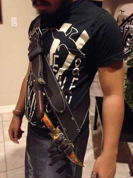 recientemente publicado un instructivo para un tahalí económico (girada hacia fuera tahalí) que hice para mi hijo. También pidió algunos accesorios ir con su tahalí. Este soporte de matraz fue uno de los adornos para agregar a su personaje de pirata