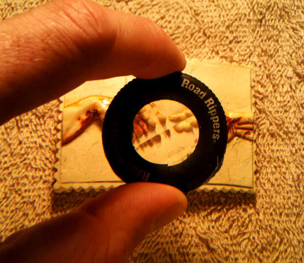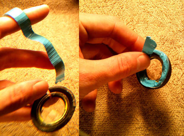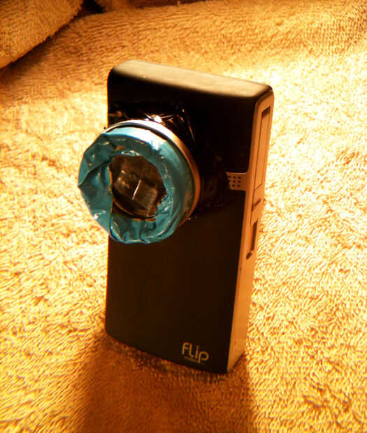 Tira de la anchura de una cuarta parte de la cinta funciona mejor. Iniciar en el exterior y avanzar en su camino la lente pero evitar cinta adhesiva sobre la abertura donde se estará filmando la cámara a través de. Usé otra tira de cinta de encubrir algún adhesivo expuesto desde el primer paso. Ahora tienes una lente caleidoscopio que cabe dentro del paso anillo unido a la Flip HD en la lente de telephoto mod. Se puede rotar para crear un efecto psicodélico, o como una transición a una secuencia de sueño en su película.