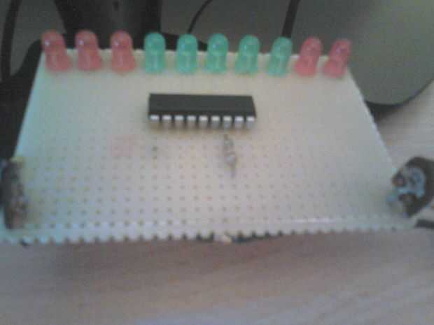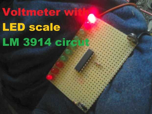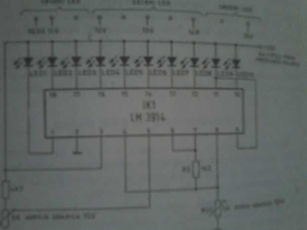 estaba trabajando en esto durante algún tiempo, después de un largo período decidí compartir esto con ustedes. He usado LM 3914, dos resistencias R1 = 4 kohm R1 = 1kohm y dos ajuste potenciómetro Rv1 = 5 kohm y Rv2 = 5 kohm, 10 LEDs (verde 5, rojo 5). Es bueno para el uso del coche o para cargador etc.. En las fotos usé una batería casi vacía y el cargador para simular la tensión de la batería pequeña y alta. El rojo primero tres LEDs para la tensión de 10,5 V 11V 11, 5V, el verde 5 leds son para volage de 12V; 12, 5V, 13V; 13, 5V; y rojo dos últimos son de 14, 5V; 15V. La tensión más baja es 10V y el mayor es de 15V, R11 y Rv2 se utilizan para la calibración manual. Voy a publicar actualización en esto.