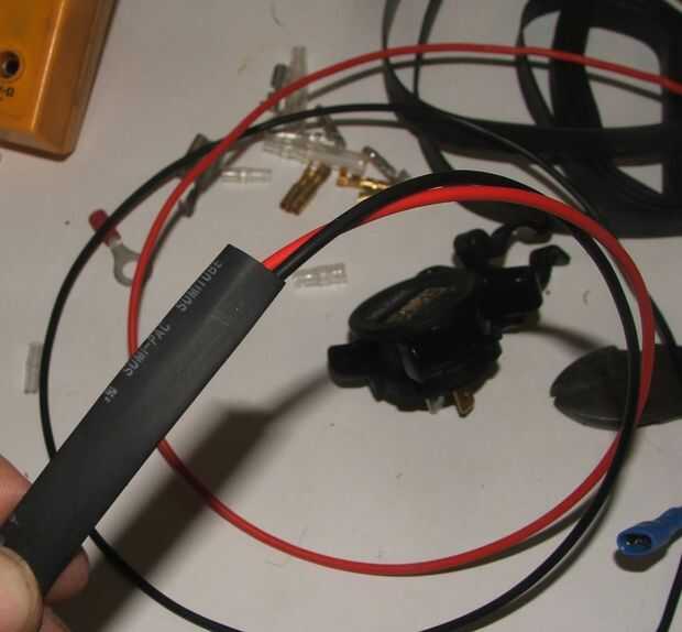 Cortar dos trozos de alambre, es mejor que sobre estimar la longitud necesaria, esto puede recortar más tarde. Pase los cables a través del tubería del encogimiento del calor.