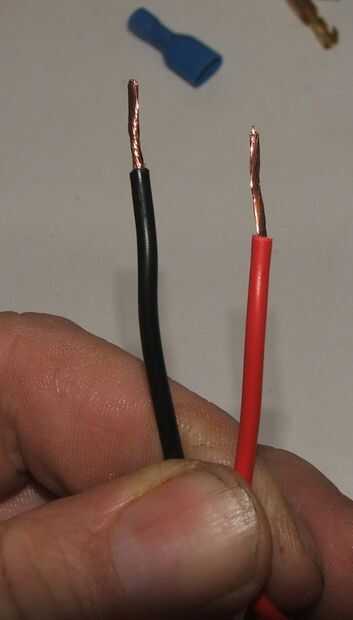 Pele los extremos de los cables y prensar en una terminal a cada uno de pala 1/4".