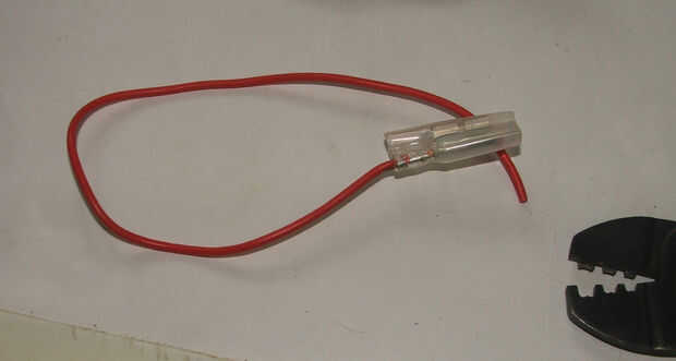 Usando un pedazo corto de alambre, conecte un conector hembra tipo a uno de los extremos. El tipo que estoy usando es una toma de corriente de tres vías. Esto me permitirá montar otros accesorios más fácilmente en el futuro.