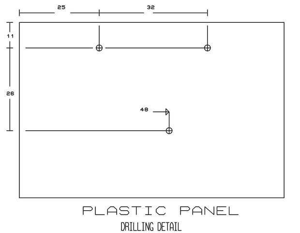 Los paneles de plástico están disponibles en la mayoría de las tiendas modelo en hojas A4 para un par de quid y son fáciles de cortar paneles más pequeños marcando ellos hacia fuera y corte a lo largo de las líneas con un bisturí. El panel de abajo se muestra un dibujo mecánico. Simplemente marque el panel plástico y agujeros taladro el M3 y esta tarea se ha completado.