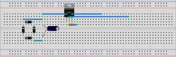 Alambre de la resistencia en paralelo con el primer pin del transistor y el último pin del transistor.