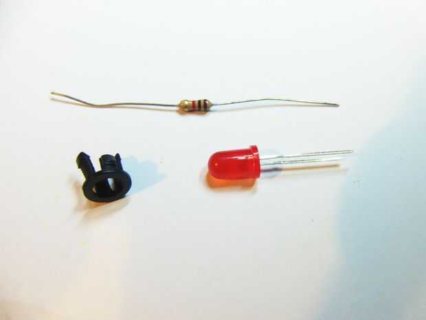 -1K resistencia (probé el mío de 2, 5V a 24v y esta resistencia parece funcionar bien, aunque no lo dejaria en durante mucho tiempo a más de 12v).