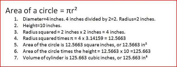 6. multiplicar el área de la base del cilindro (el círculo) por la altura del cilindro.
