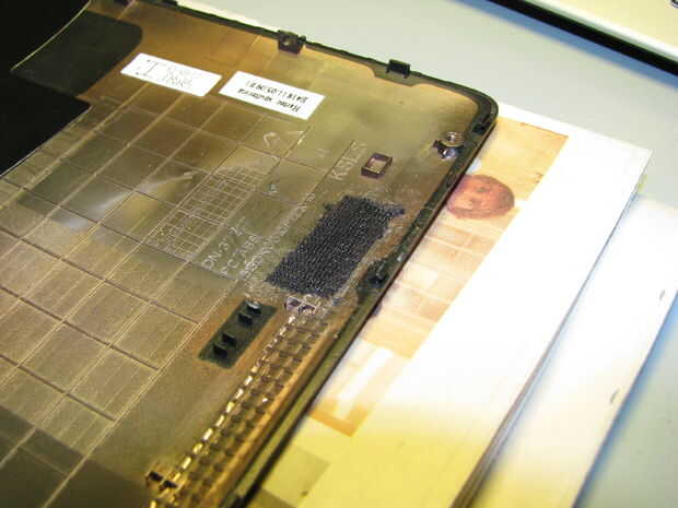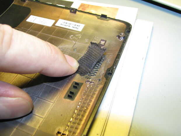 Use pequeños pedazos de textil negro a y proteger el interior altavoces y la oscuridad los agujeros. Fijar con unas gotas de pegamento