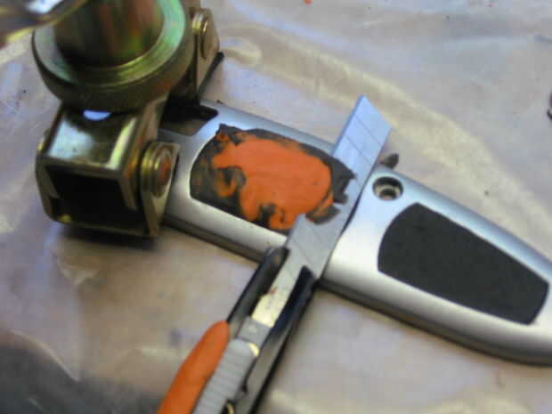 Veinte y cuatro horas más tarde después de la naranja Sugru había fijado lo era tiempo de terminar para arriba. Usé mis dedos, pinzas y una sonda para eliminar los trocitos de Sugru que ligeramente se ha adherido a la cuchilla. La mayoría de ellas que pude frotar con la punta de mi dedo como la jalea de petróleo mantuvo se adhiera firmemente.