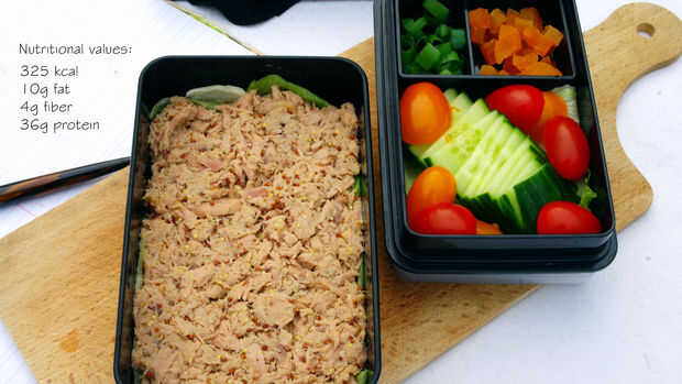un Bento Box es una caja de comida japonesa tradicional. Las cajas del bentó pueden contener cualquier número de artículos alimentarios y tipos. Cajas de almuerzo Bento tradicionales están llenos de una relación de servicio de 4:3:2:1; 4 de arroz, 3