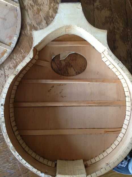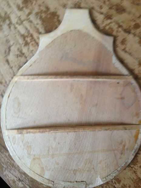 Instrumentos acústicos son apoyados típicamente por un sistema de refuerzo. Tiras de madera generalmente abarcan el ancho del cuerpo de una guitarra/mandolina dado para evitar que el instrumento de que se derrumban bajo la presión de cuerdas. Después de años de uso, sin embargo, bracings a menudo romperán o caen, dando como resultados una fuerza corporal comprometida. En el caso de mi mandolina, los bracings parecen mal aplicado (como ocurría a menudo con instrumentos hechos a mano producidos en masa). Con una maquinilla de afeitar y poco más de agua caliente, quité cuidadosamente los arriostramientos de la parte superior del cuerpo, así como de la parte posteriora (que me lo quitaron en el paso anterior). Hacer todo lo posible para eliminar cada soporte en una sola pieza como puede utilizarlos más adelante.