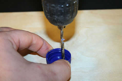 Cuando termines con la primera tapa, use como guía para perforar (2) orificios en la parte superior de las tapas (2) restantes. Puede colocar el top a top tapas cuando taladre los orificios. Ahora deben tener tapas (3), cada uno con (2) orificios perforados en sobre el mismo lugar.