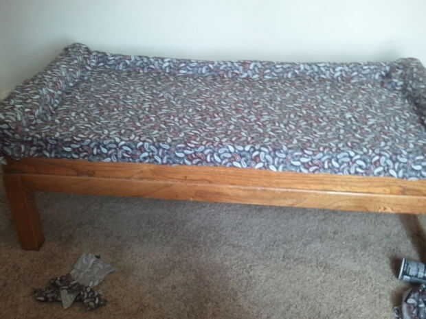 Reutilizar una vieja mesa de café para hacer una otomana