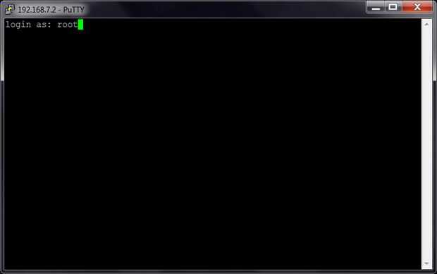 Una vez conectado a su ascua por alambre, masilla aparezca y conectarse 192.168.7.2