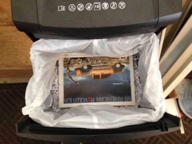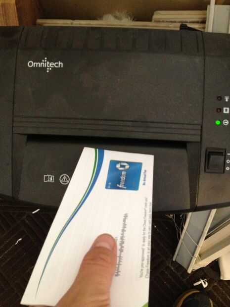 Luego ir a la trituradora y colocar una revistas. Ahora shredder la oferta de tarjeta de crédito.